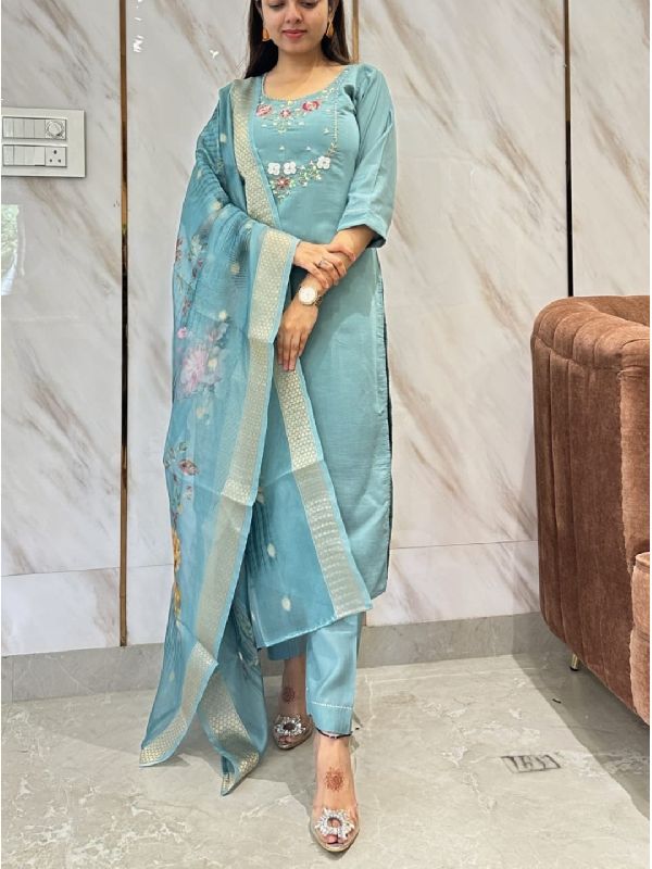 We are a leading Manufacturer, Exporter, and Supplier of this exquisite Ladies Viscose Embroidered Kurta, Pant, and Jacquard Dupatta Set originating from India. This set in Size S features a Viscose Straight Kurta with intricate embroidery work, paired with a matching Viscose Pant. The 2.10 meters Jacquard Dupatta adds elegance to the ensemble. Available in the stunning color option Firoji, this set is a perfect blend of style and comfort. Elevate your ethnic wardrobe with this beautifully crafted ensemble that exudes charm and sophistication.